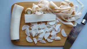 - 1 medium sized white radish – skin peeled and chopped into thin slices