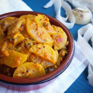 White radish or daikon is one of my favourite vegetable simply because its delicious in Indian cooking (any cooking really!). It absorbs all the spices and flavour while becoming translucent, and the flesh is just soft and juicy…the melt in your mouth kind! It can taste a little bitter at times, depending on the radish but I kinda enjoy that slight bitterness to it. This recipe is easy using basic ingredients that you can get at most grocers.